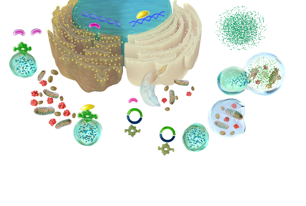 세포 내 쓰레기 재활용: 자가포식이 활성화되면 세포 안의 손상된 단백질이나 노폐물을 분해하여 에너지원으로 재활용합니다. 이를 통해 세포는 '리프레시' 상태가 됩니다.